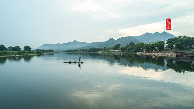 远方的晨雾给山头铺上了白纱,安静的江面倒映着墨色,昨日的渔公又划着筏子撒网,我深深呼吸了一口,愉悦了整个早上。