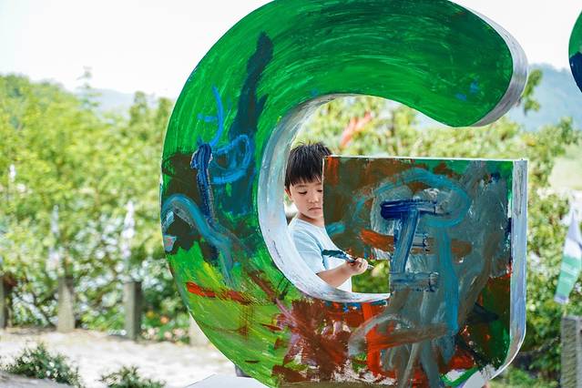 孩子们凭着对色彩的喜爱尽情发挥,很快,一个巨大的logo就被着上了各种色彩。