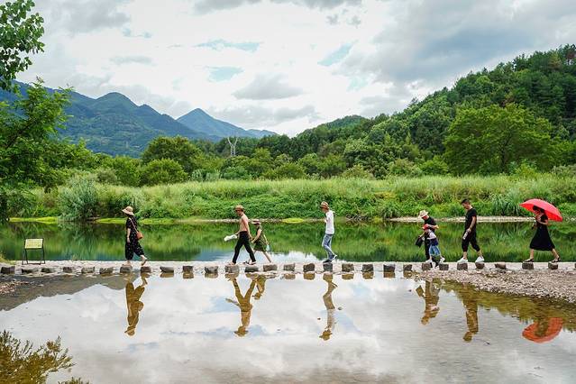 十多分钟之后,我们顺着碧绿的松阴溪来到了古堰景区。