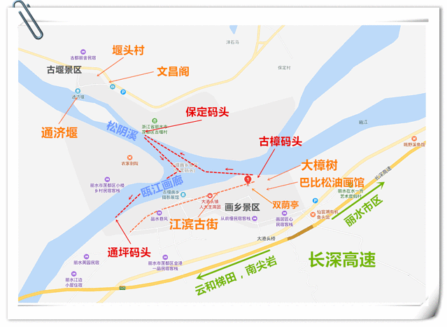 从 丽水 高铁站可以乘坐203路公交直达古堰画乡景区,大约1小时20分钟。