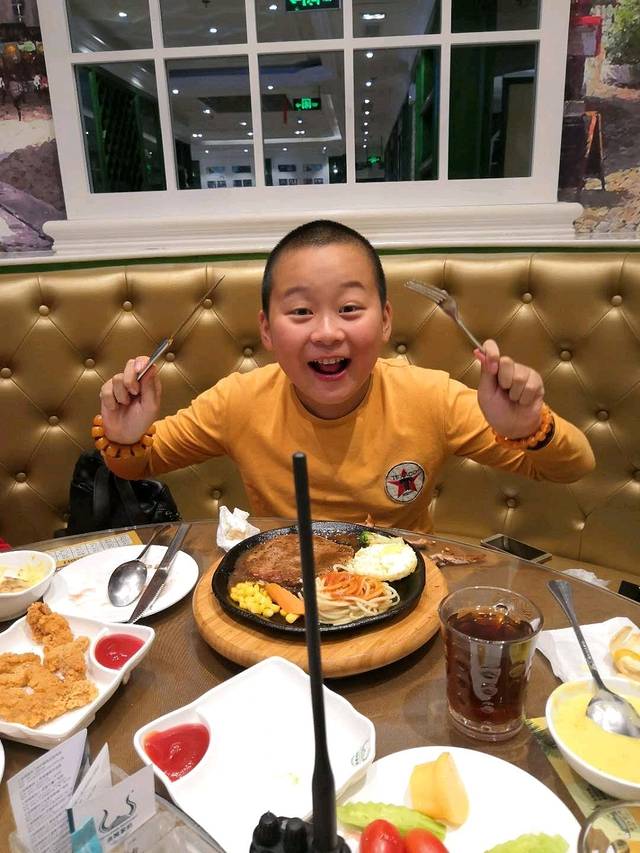 西藏之行一路上用餐不定时,对小孩是一大亏欠,当晚我们大人就依着桦桦点菜。东西南北味,他选的是西餐。