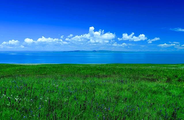 蓝天不要太蓝,青草也不要太过,然而,我们注定休养不好,平静不了。车越靠近青海湖,山坡的草越发地青,天越发地蓝,更有成百上千只萌萌的绵羊要翻越山岗。此情此景,就是画,就是诗,就是歌!