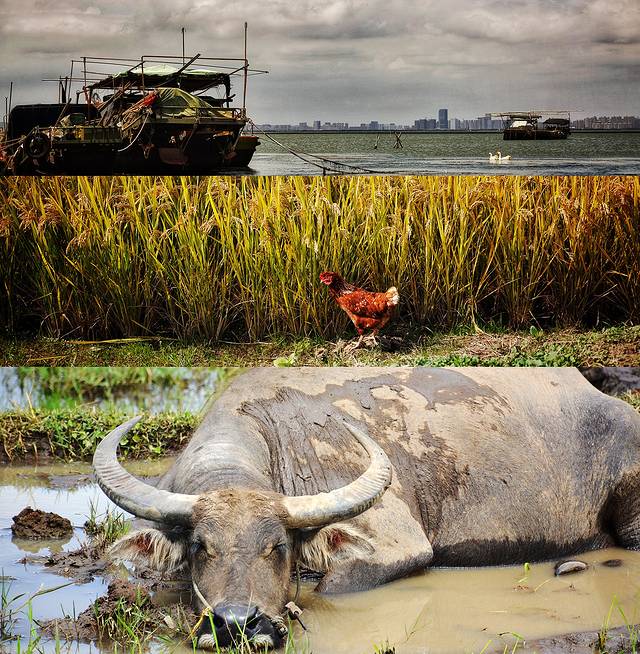 旭日跃出湖面,第一缕阳光洒在漫野的稻田,一阵炫目金黄。