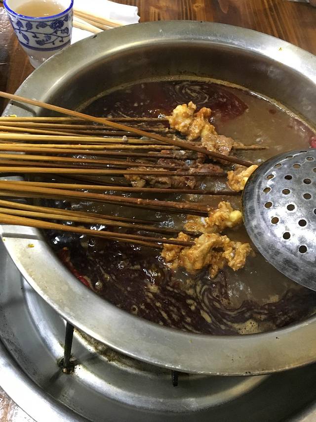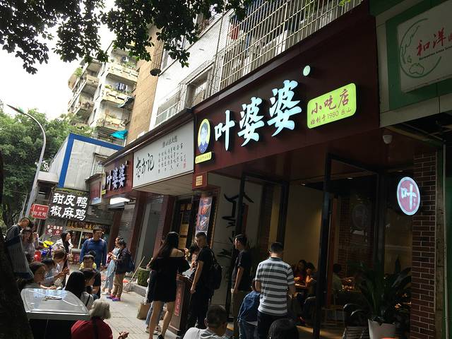 来乐山怎么能不吃叶婆婆钵钵鸡呢?当然要拔草了。(王婆婆的名字也是这么来的。)