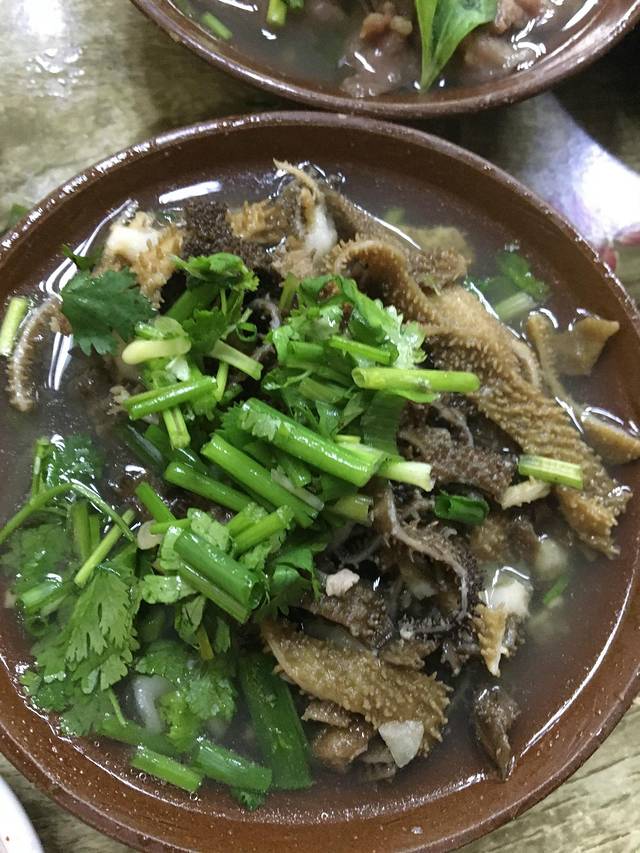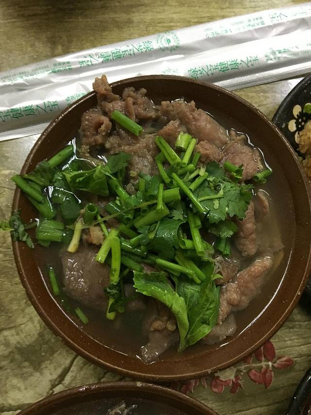 大约等了半个多小时,才上菜。中途想去催一催,老板说不要问,一忙就乱了。她那有每桌点的菜,按序放着。粉蒸肥肠最为喜欢,粉子很香,肥肠也好吃(这道菜是王婆婆点的,没想到是最好吃的。王婆婆说他是不轻易出手。)。嫩牛肉又嫩又滑。毛血旺里面的料很香,也好吃。就是毛肚味道一般。一堆肉菜下肚后,跟随一道包儿兰,最为合适。人均30元,真是物美价廉。