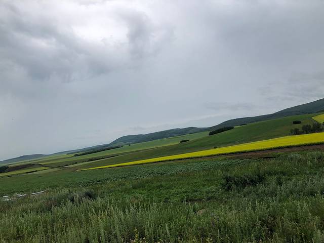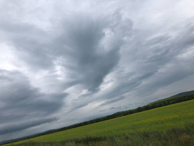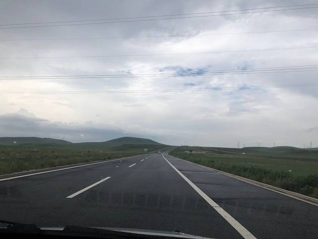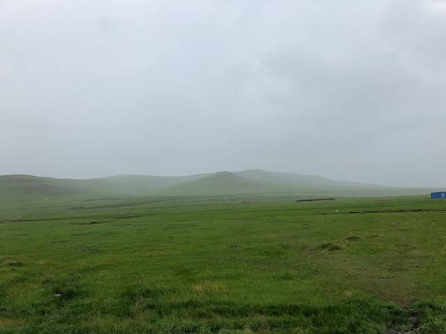 雨越下越大,由小雨变成了暴雨,能见度也越来越低了。这样的能见度,也着实让我担心了好一会儿 。一直到中午1点多,才渐渐地停下来。此时,我们已到达新巴尔虎旗。