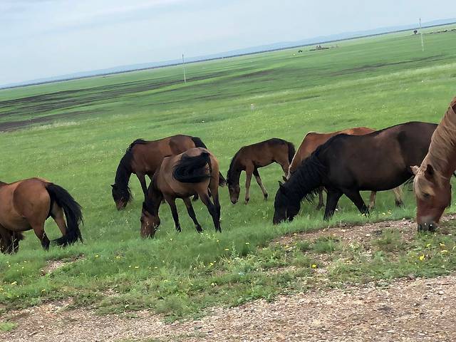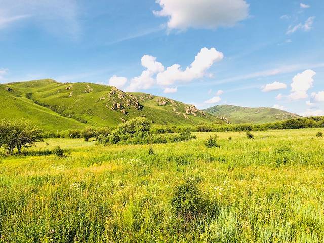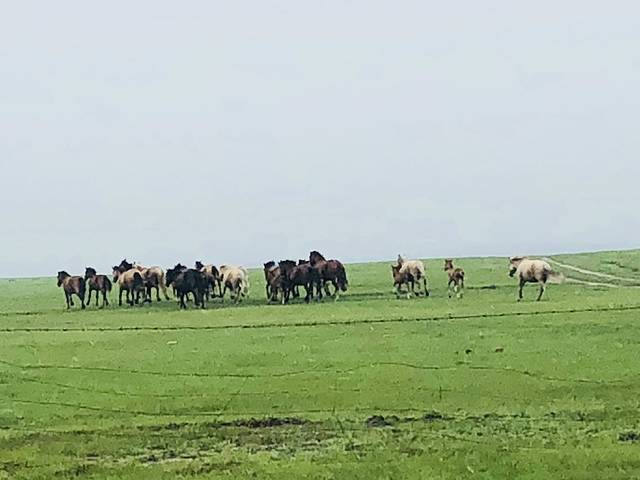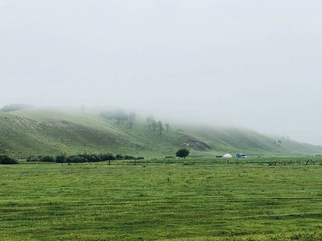 大雨过后,迷雾渐散,很是凉爽。空气很好闻,夹杂着青草与泥土的味道,清新而湿润。草原经过大雨的洗涤,变得更加生机勃勃,清新靓丽。