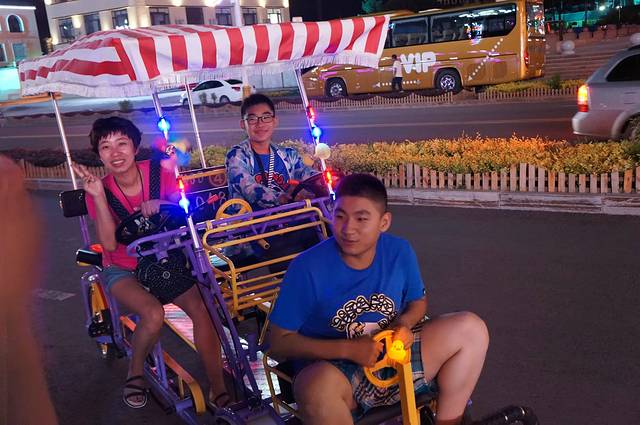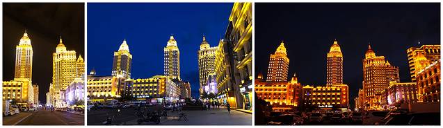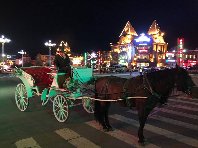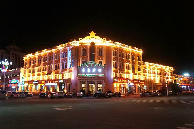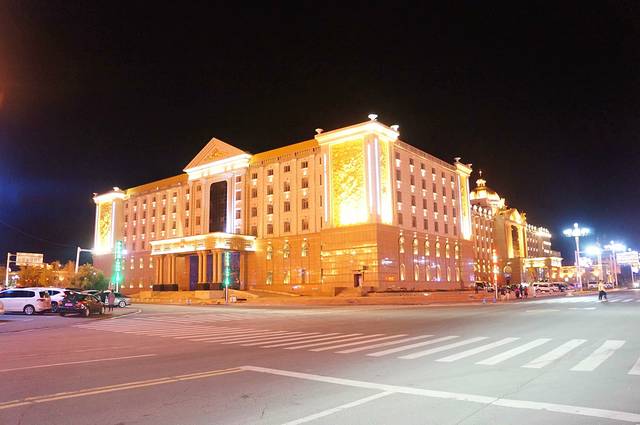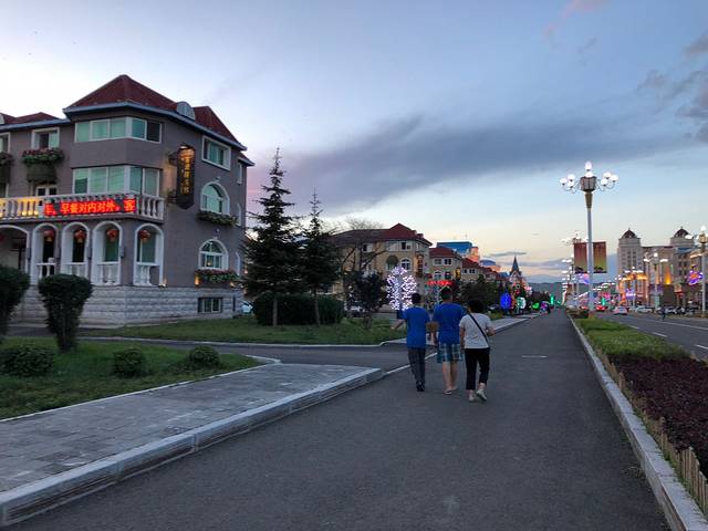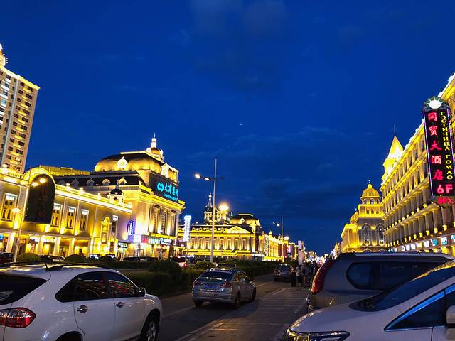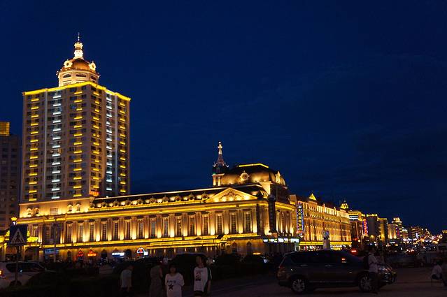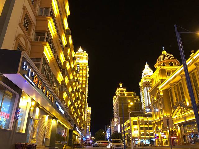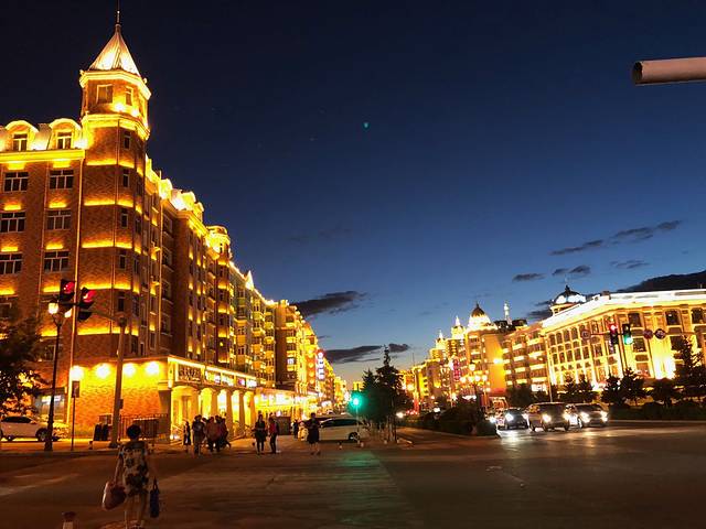 街道两旁各种欧式的建筑,在灯光的闪烁下显得辉煌美丽,霓虹的灯管勾绘出高楼的轮廓,大片的彩色灯光投影到大厦的墙上,丝毫不逊于白天的鲜艳明亮。我想,如果用颜色来形容一座城市的话,满洲里无疑是五彩缤纷的!