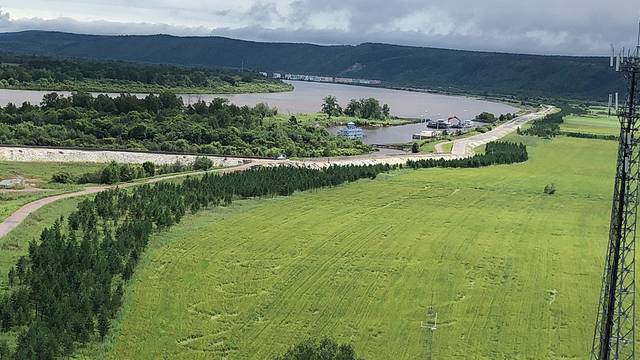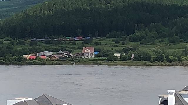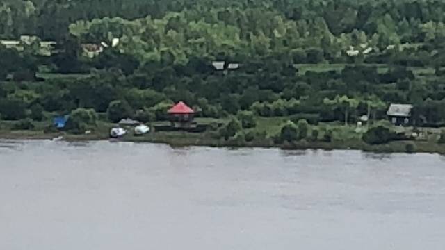 黑龙江对岸的俄罗斯的一个小村庄,中间红顶小楼是村长的住宅