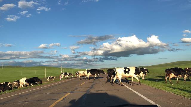 可爱的奶牛们结伴而行,它们可是会过马路的哦!这个时候你可千万不要鸣笛,否则会把它们吓到的!