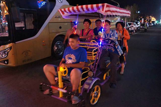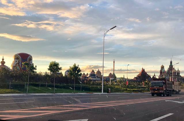 干净整洁的迎宾大道上,到处是这样的车子,来来往往,鸣笛问好,处处欢声笑语。大概只有在这童话世界里,才能真正地释放自己,随心所欲地唱着快乐之歌......