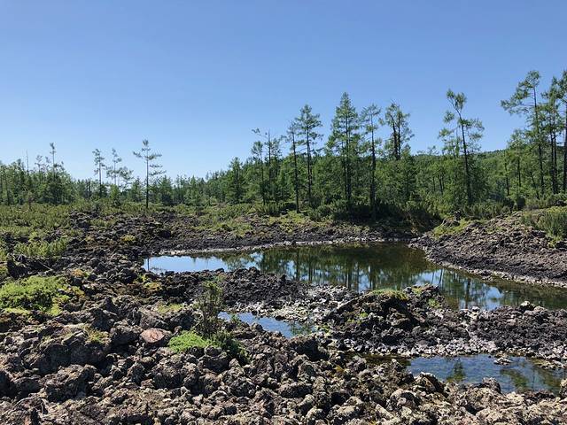 石塘林位于天池林场东,距阿尔山市温泉街84公里,是大兴安岭奇景之一。为第四纪火山喷发的地质遗迹,是亚洲最大的死火山,玄武岩地貌,地质构造、土壤、植被生物均保持原始状态,生物多样性复杂,再现了从低等植物到高等植物的演替全过程,具有较高的科研和保护价值。石塘林长20公里、宽10公里,是由火山喷发后岩浆流淌凝成。