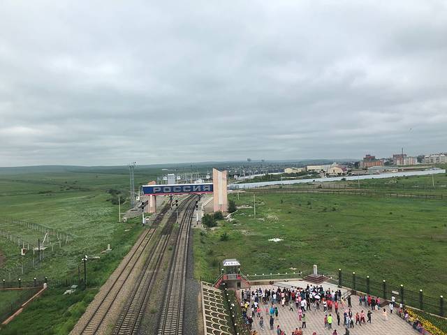 登上国门,俄境后贝加尔斯克区的车站、建筑、街道、行人尽收眼底。