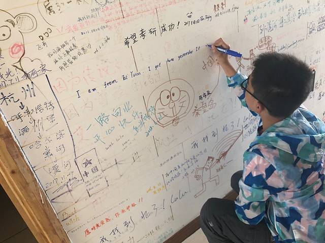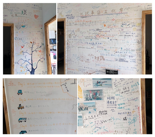 这家青旅的墙上留下了许多来自五湖四海游客的留言。
