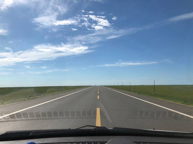 笔直的公路上车辆很少,一眼望不到尽头。忍不住让人幻想在路的尽头会有什么样的惊喜在等着我们.......