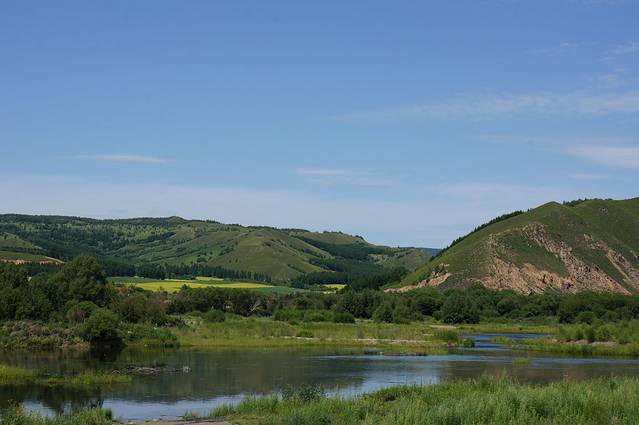 下午2点左右,进入根河地界,已不再是一望无际的大草原了