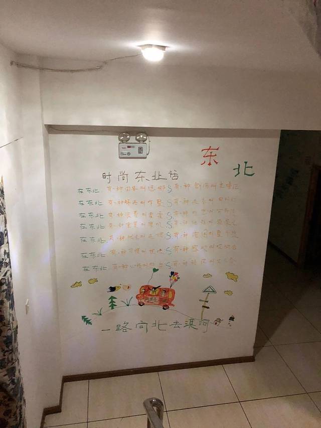 儿子有感而发,也在墙面上留下了此次出行的不易