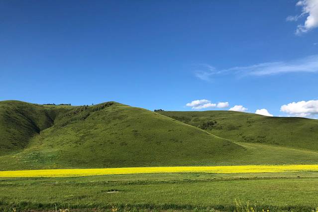 离开喧闹的市区,行驶在绿草如茵的大草原上,湛蓝的天空飘着朵朵白云,犹如棉花糖一般,离我们是那么得近,似乎一跳就能抓住。