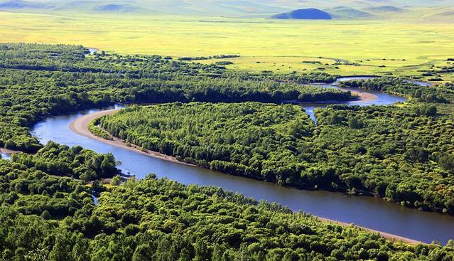 内蒙古额尔古纳国家湿地公园,由根河及周边沼泽、滩地、林地等组成,这里拥有亚洲原生木本湿地中面积最大、保护最完整、物种最丰富的湿地,享有“亚洲最美湿地”的美誉。