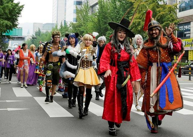 在这次富川国际漫画庆典可看到漫画迷一边COS一边享受庆典的样子。