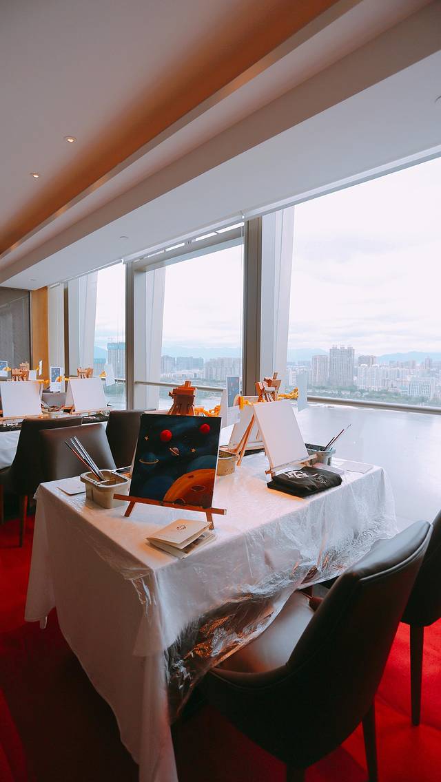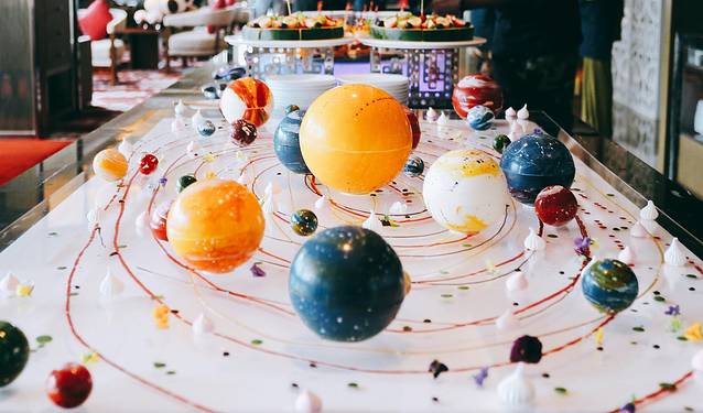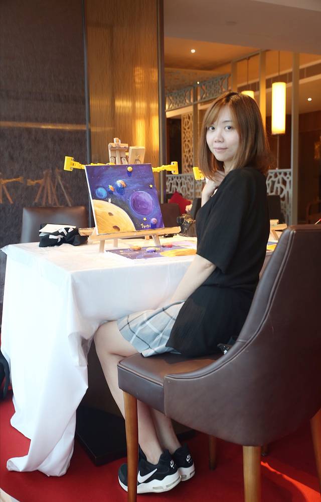 美景下不画个画起不是可惜了,25楼的行政酒廊下午有 「星空主题」的甜品秀和插画体验,美轮美奂的甜品,每个星球里头都有神秘的惊喜,还有三层下午茶甜品。