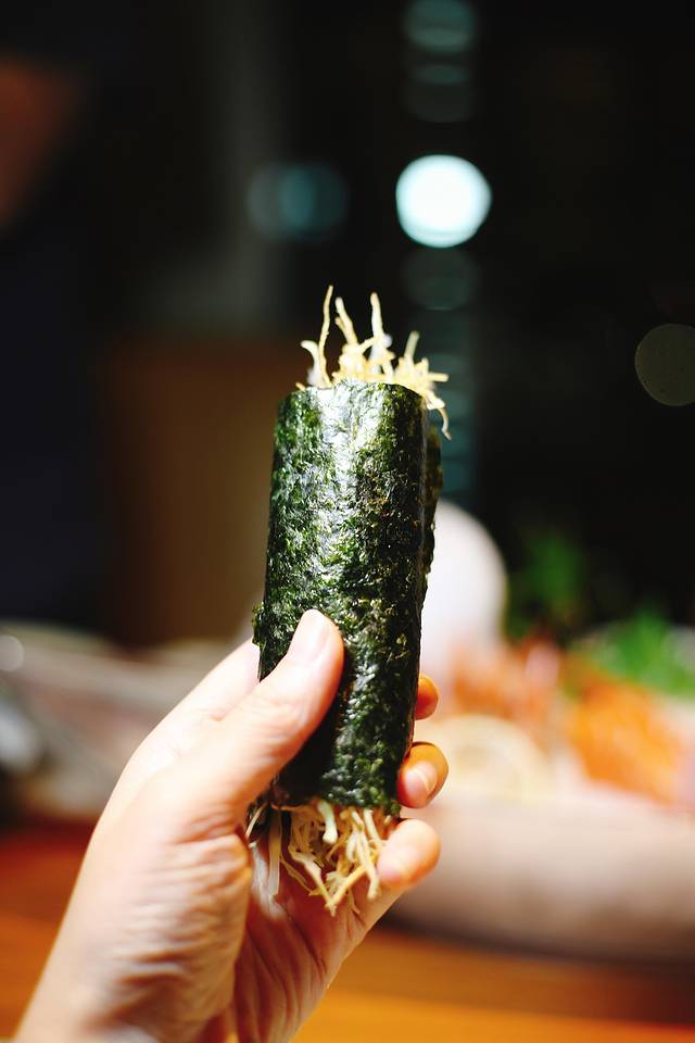 还有牛蒡手卷,纸锅九头鲍,七味雪花牛,金枪鱼脆虾卷