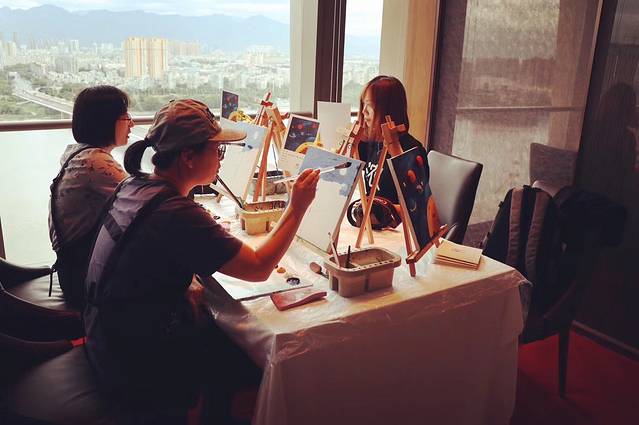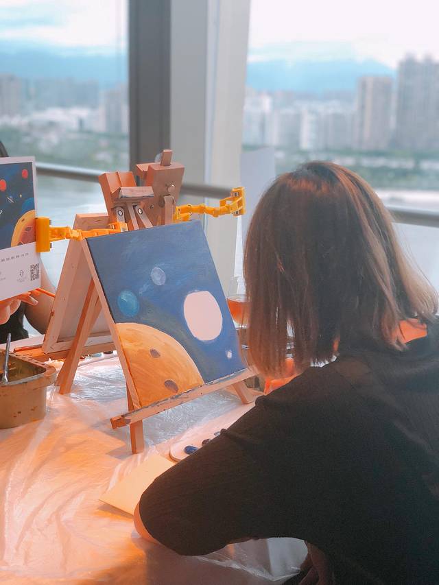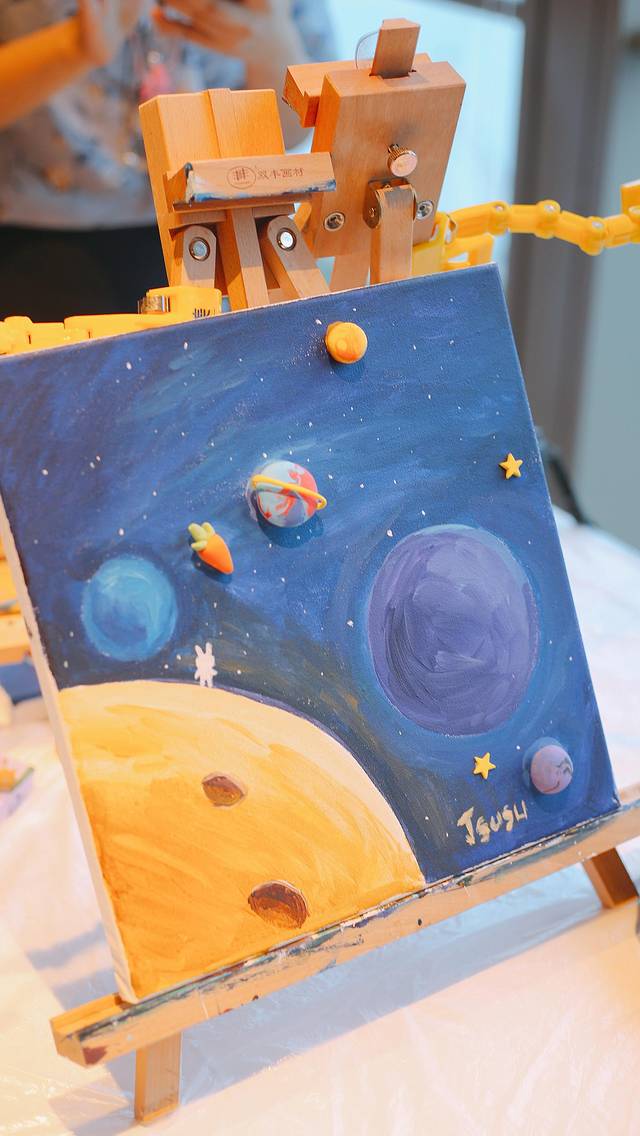 nunu color联合举办的社交油画融入了软陶装饰,在温柔的老师们指导下路人都可以学会的星空插画