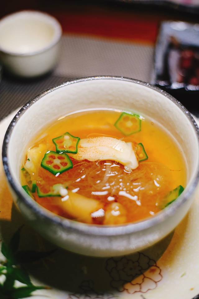 推荐脆爽的牛蒡第一次吃哈哈哈,还有鲜甜的小象拔蚌松茸石锅汤,牛肉七味烧也是独家做法牛肉品质不错,再表扬下前菜腌萝卜。