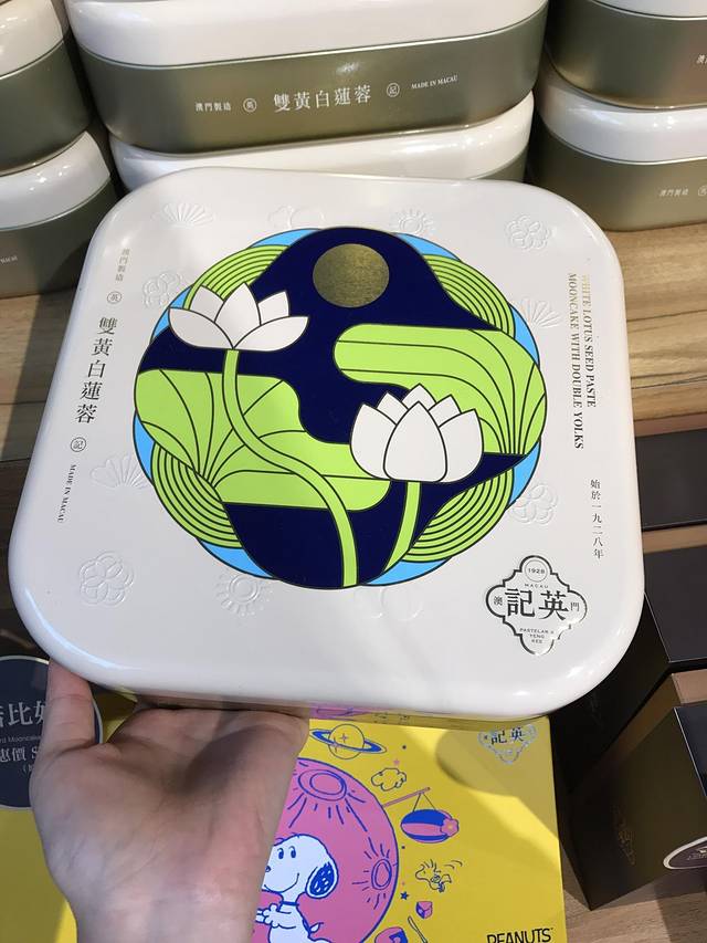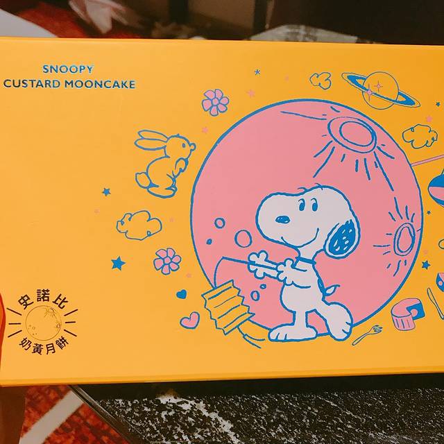 1.澳门英记史努比奶黄月饼,买这个月饼是冲着澳门英记饼家的名声去的,太出名了。澳门英记有90年的历史了,而且一直是用古法做饼,手工制作,味道在澳门也是一绝。另外一点,就是包装太可爱了