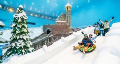 这座全球超大的室内滑雪设施建筑面积达8万平方米,全天最多可同时容纳3000人共同娱雪。乐园内设置了北欧风情的娱雪城堡、冰滑梯和6条不同坡度的国际化标准雪道,超过1.5万平方米综合戏雪区供玩雪爱好者尽情玩乐。此外,乐园内还提供雪服与雪具租赁服务,方便游客们前来玩耍。