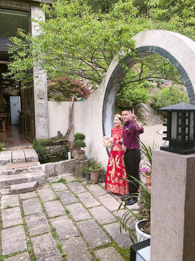 正好有对新人在门口拍结婚照哈哈~新郎皮了下