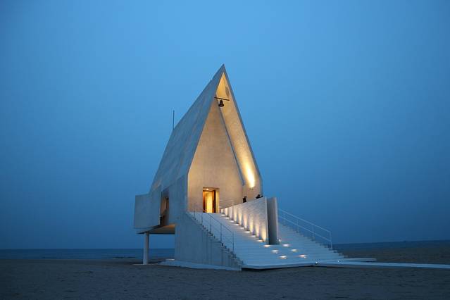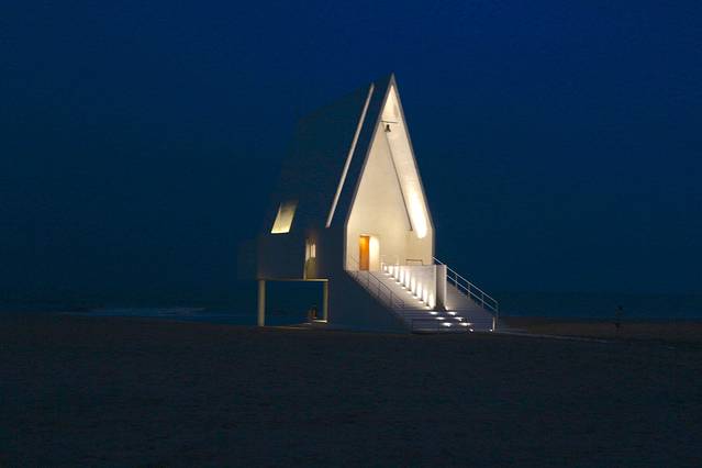 阅读区呈阶梯状,每个人都有平等的机会看到大海。阅览室屋顶有阵列式的小光筒,也是通风口。光是有生命的,随着时间的推移而移动。