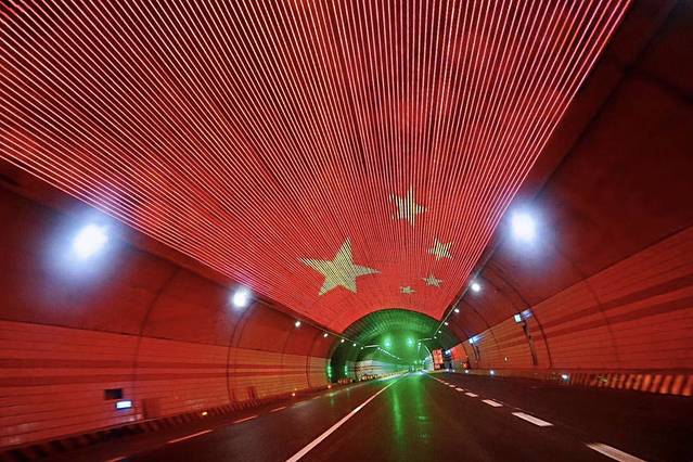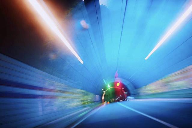 雅康高速隧道里的霓虹灯带,随手一po都很美。如同时空隧道,带我们穿越到风景美如画的川西。
