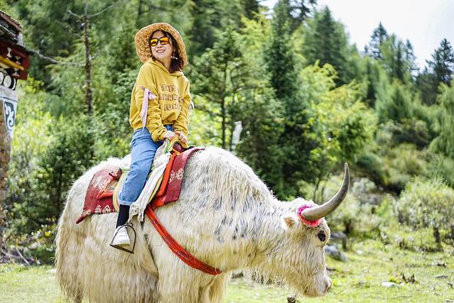 在藏区,牛羊是最便利的运输工具;对于我们来说,则是极好的拍照道具。胆子大的可以来木格措,体验骑马走山路的快感。