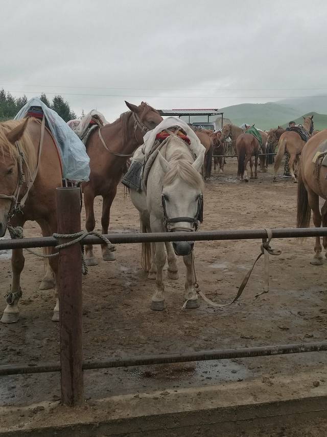 这是我第一次来草原,也是我第一次骑马,虽然只是有人牵着马走了两圈,但是体验相当好,有点喜欢骑马了,就是马场的气味。。。不怎么强气。。。