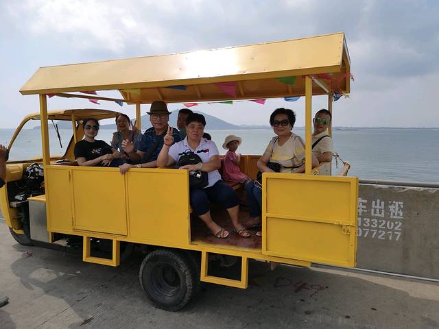 码头上有公车和三轮车,去景点还是坐三轮车方便,一个点一个人5元!刚好有一个大车,我们10人一车,去了两个点!