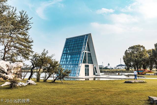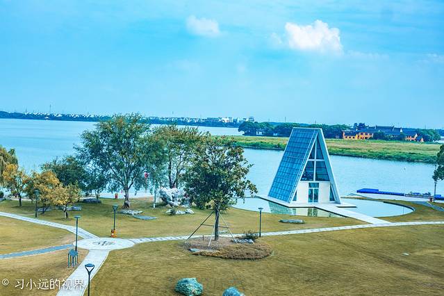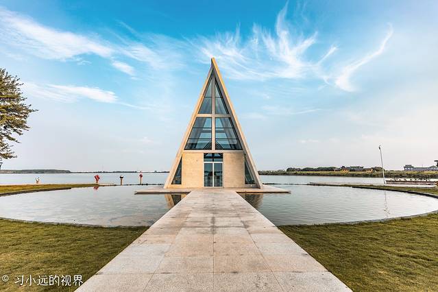 走进面朝 同里 湖的房间,站在窗前向湖望去,最吸引我的就是这个看着就超级有仪式感的半透明三角形建筑。远观不如近看,近看不如走进去体验,当走近这样的场景,仿佛面前就有一对新人举行着草坪婚礼,然后携手走进这殿堂完成此生的誓约,再对着湖心许下承诺,彼此看了眼望向未来的路,一定是难忘的婚礼啦。当然这里不仅吸引了我,也吸引了来住酒店的其他人。