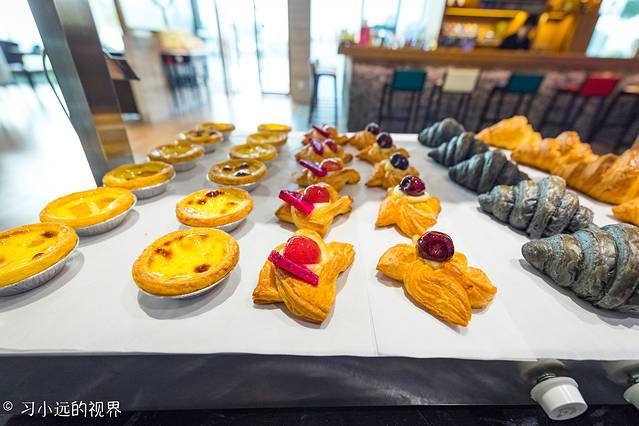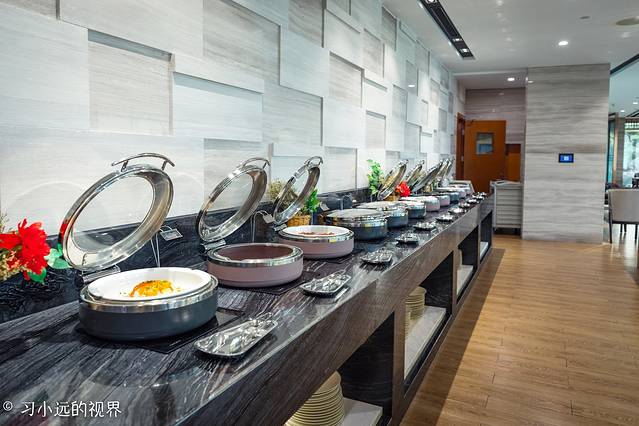 大饭店的 卡夫 卡早餐厅,师傅们六点多就开始忙碌起来,以保证住客起点可以吃到早餐。营养早餐从甜品,酸奶,寿司、面包、搞点、烤肠、水果,粥等等种类,满足不同口味的需求,工作人员还会亲切的问候需要什么,会帮你取来。