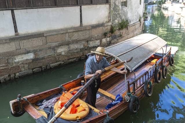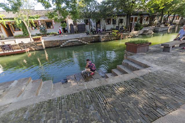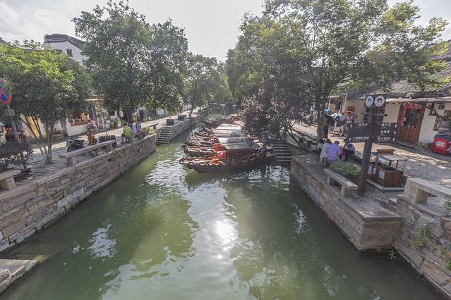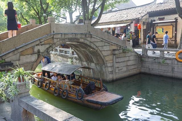 古镇水乡自然是不会少了船只的,不同于乌篷船,这里的船也有自己的特色,坐着小船看着船夫一摇一晃摇着撸,随着船在前进,看着倒退的河边的古镇建筑,行走的游客,河边洗漱的土著,像是一个方向放画册一样,丰富的画面会有不一样的感觉。