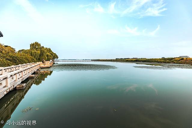 走近看这个玻璃房,位于一个小水池中间,中间有走到连通,在蓝天下,玻璃也映着白云,仿佛白云在房子里流动,在屋内摆放几排座椅,正面正对着 同里 湖,可以想象一下这里举办仪式时,鲜花夹道,宾客满座,面对着 同里 湖行礼,是一间多么浪漫的事情。