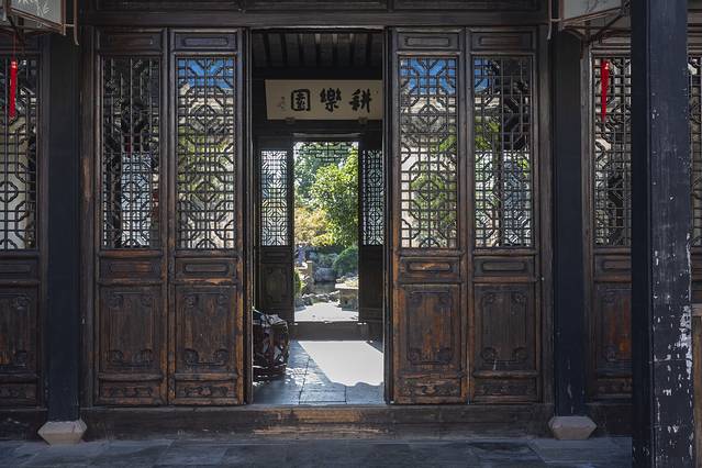 耕乐堂厅堂之间共有4座门楼,有“乐善家风”、“耕乐小筑” 、“耕读传家” 和“竹苞松茂” 四组砖雕字,看上去似乎都是近年修复的。耕乐堂曾经辟为社会福利院,1998年开始修复,2001年才正式对外开放。