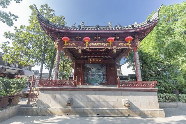 位于富观街长庆桥北堍,坐北朝南,面水而筑,东南与 嘉荫 堂隔河相望,西与长庆桥等三桥相望。