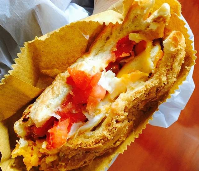 华嫂冰室的菠萝油烘得微暖松软,咬下去松脆甜香,面包里还夹着牛油浓郁的咸香和番茄的酸甜,口中充满着牛油和炼奶的香味,让人无法拒绝!