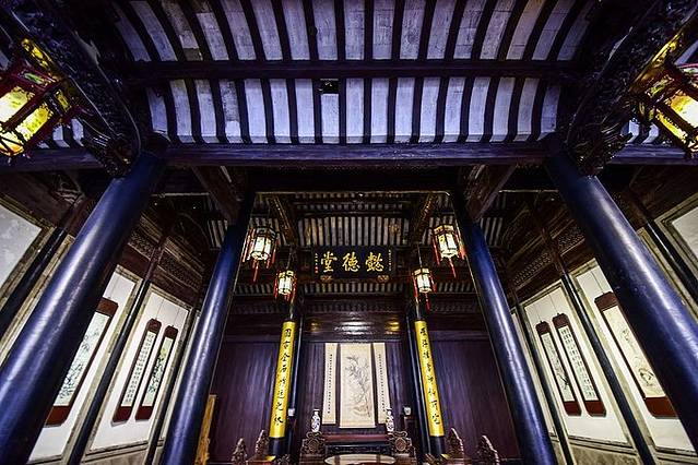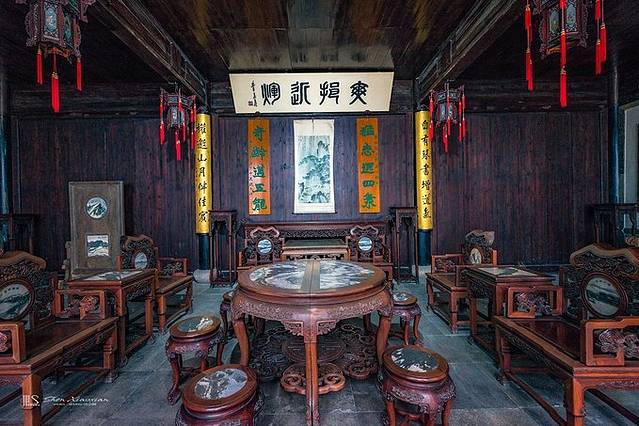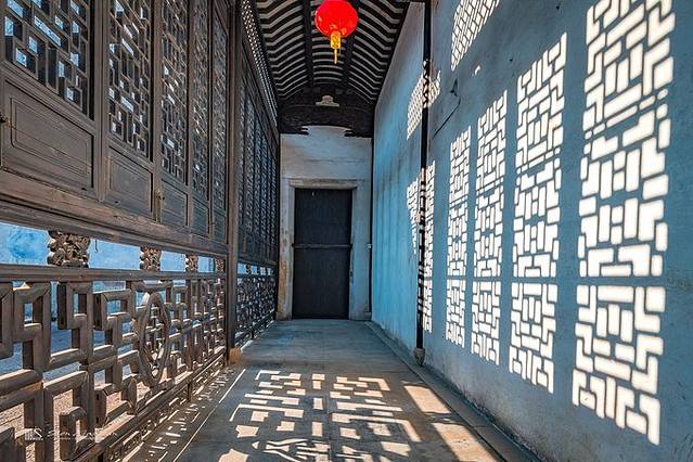 整个建筑的雕刻具多,房子线条简洁、高敞、布局通畅,是典型的江南豪宅。每扇窗子上都刻上了不同的小篆,屋内浓浓的书香氛围让人备受感染。