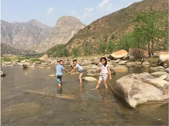 随后,我们去了沿河城。沿河城是一个古村落。进到这个村里,感觉穿越了一样。 好像时光又回到了从前。城里的孩子们很少见到砂堆,几个小孩在砂堆上玩的很是尽兴,弄的满鞋里都是砂子,完全忘记了周边的景色,也许对于他们,砂堆的吸引力要比周边的景色再具有魅力吧。