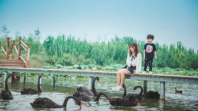 双龙湖其实是一个湿地生态公园,园区很大,散养着很多家禽鸟兽,可以逗鸟,可以观荷,可以赏鱼。只要在进门的地方花5块钱买上2杯鱼食,准保走到哪里,都被一群鸡鸭鱼蟹的众星捧月的围在最中央。