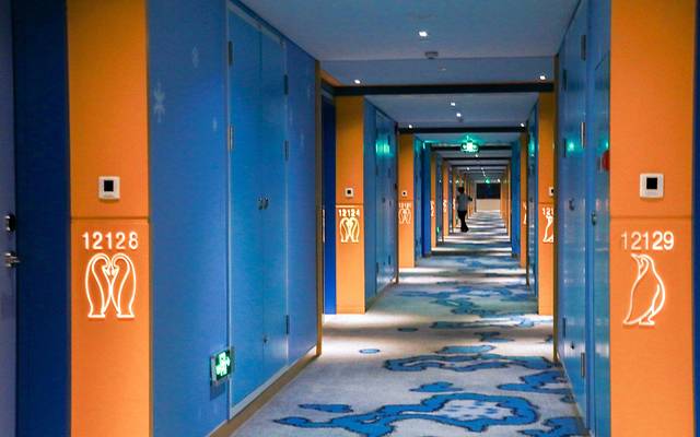 大堂的香氛有童话的味道,企鹅雕塑、水晶城堡,所有的陈列都是企鹅相关的经典场景,似乎每个细节都能延伸出一个浪漫的小故事;