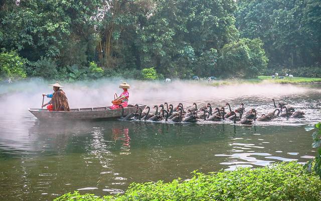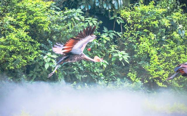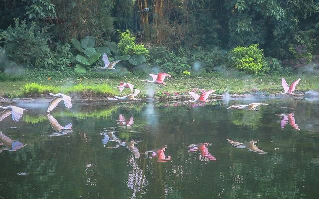 林间仙雾缭绕,灵鸟悠闲自得,水中天鹅结伴逐戏,岸边红鹮低头觅食。精美走心的舞台设计,恰到好处的音乐和讲解,引来鸣声,啼声,掌声不绝回响于耳;