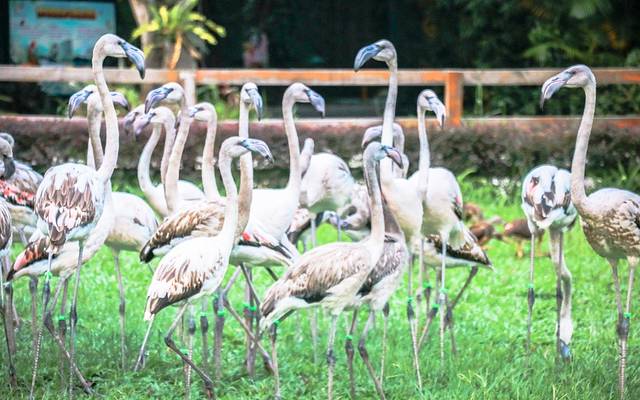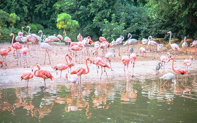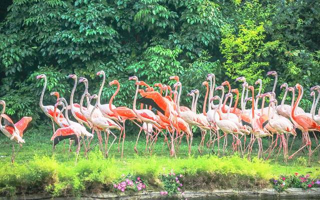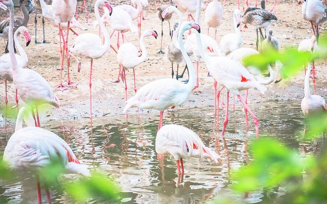 回程的路上偶遇了一大波粉色火烈鸟,他们通体赤红或是间红,深得众多女生的喜爱;不止是外形美丽,它的仪态也是优雅高贵;火烈鸟总是以长而纤细的双足信步涉水,弯曲着优雅的S型长脖子,恰似一位容貌端丽的贵妇;给人一种洋气、时髦、优雅、轻盈的气质