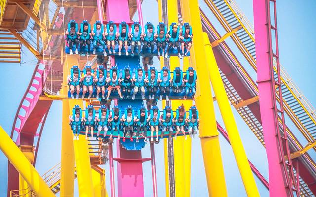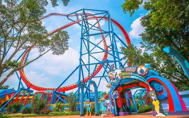 它创造了游乐设备的四项亚洲第一;其中包括:“全球过山车之王”垂直过山车、创吉尼斯世界纪录的十环过山车、荣获行业设计金奖的摩托过山车、超级大摆锤、东半球唯一的U型滑板等世界级巅峰游乐项目。